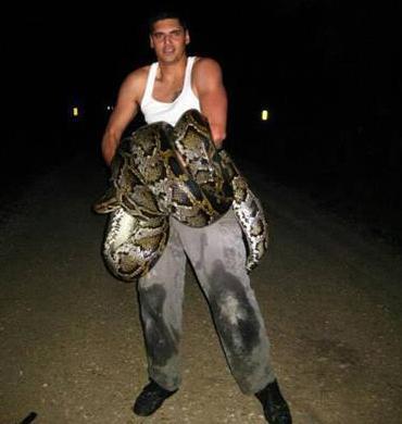 Last May, Miami resident Jason Leon killed an 18-foot 8-inch python he caught crossing a road at night. Mr. Leon killed the serpent with a knife as it wrapped tighter and tighter around his leg. That snake is considered to be the longest ever taken in the state. So what did he do? He wrestled the beast, knowing it was an invasive species, and eventually decapitated it with a knife.