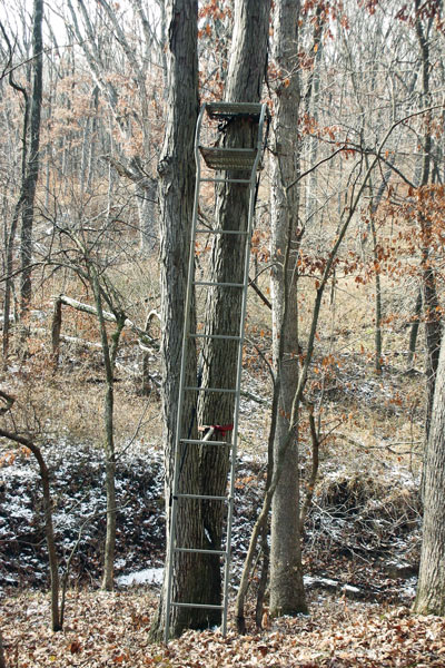 On approaching a stand setup, try not to cross the main travel pattern you’re hunting. Sometimes there are situations where you have to do that. In these cases, plan your approach to the stand right in a precut shooting lane. That way if the deer cuts your entrance trail on approach and stops to smell your minimal ground scent, at least he is standing in a shooting lane.