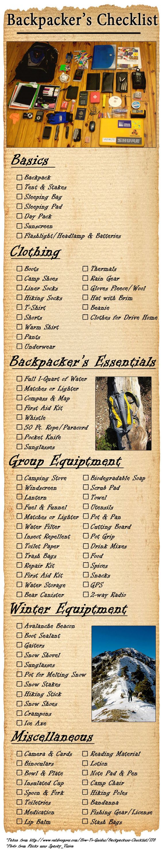Checklist for Backpacker’s